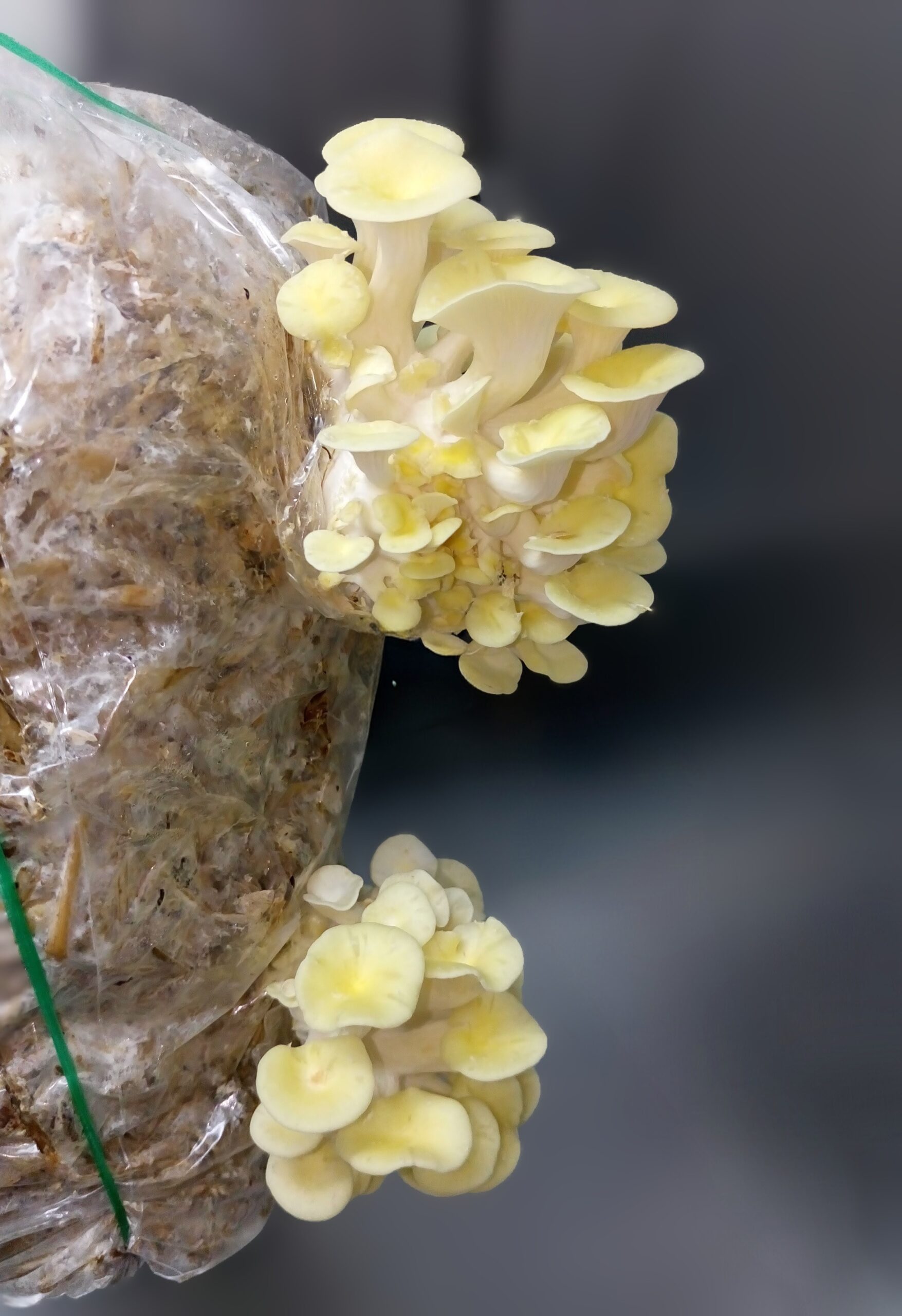 Teramütseel on nakatatud kuldserviku (Pleurotus citrinopileatus) seenetüvega.