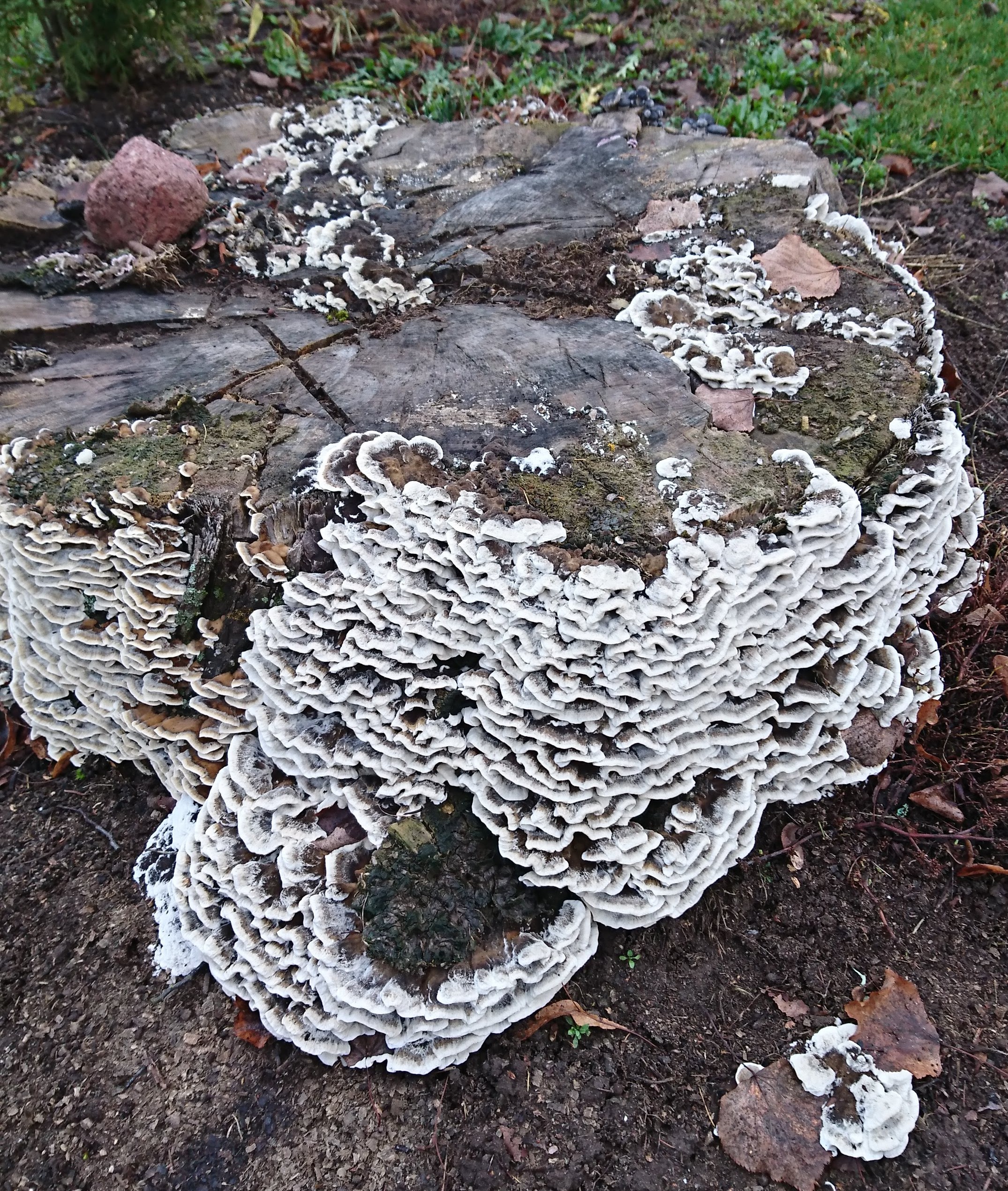 Lehtpuu kännulagundaja seenetüüblid eestimaist päritolu hariliku suitsiku (Bjerkandera adusta) ja karvase nahkise (Stereum hirsutum) seenega.